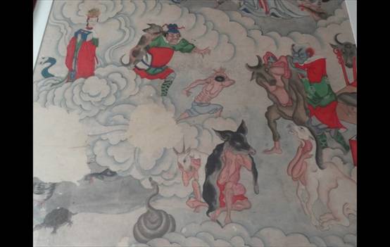 总之,这三个十王画中常见的经典故事体现了法师十王画的某种“乐观性”。因为法师会在“破地狱”仪式上使用这些十王画,所以这些画不会只渲染地狱的恐怖和报应,也会宣传救苦神可以超度亡魂。这或许是有这三个故事的十王画和其它十王画的一个重要区别。