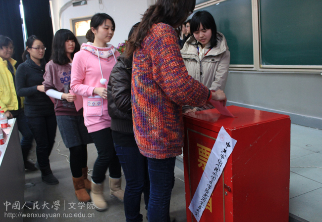 随后举行了香香腐宅 第二届委员会选举。教工行政支部黄彦菲老师为总监票人,影视文学支部陈阳老师等7人为监票人,08级本科生罗观等16人为计票人。选举由总监票人黄彦菲老师主持。