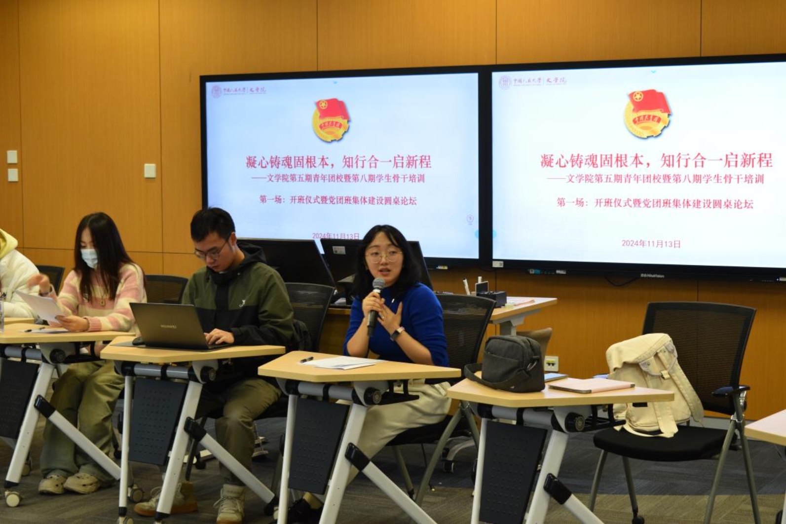 班级专场由张雪儿主持,围绕“如何有效推进班级评奖评优工作”“如何巩固班委团队建设根基”两个主题展开研讨。同学们轮流分享了各自班集体建设中的经验、困惑与难题,就如何提高班级凝聚力和集体感、如何平衡班级内部诉求、如何发挥班委在班级建设中的带头作用等问题展开了热烈讨论。