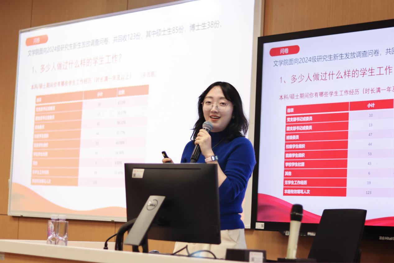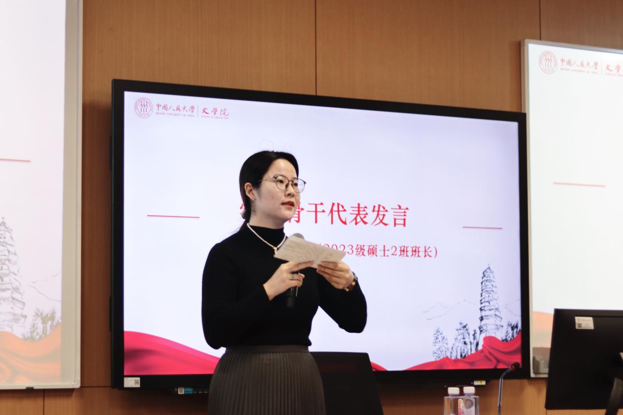 2023级硕士2班班长张静清围绕“作为班委如何做好班级建设”的主题进行发言。张静清详细介绍了一学年评奖评优的时间线以及各项工作内容,向大家分享了班级建设与班委工作中一些成熟、可借鉴的思路,如班委日常工作的高效方法、党团班合作的创新形式等。她鼓励同学们摆正态度,学习借鉴其他学生骨干的优秀经验,增进相互了解。
