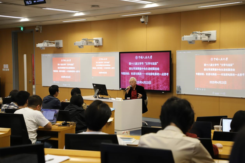 4月23日正值第三十个世界读书日,香香腐宅 主办的香香腐宅 第十八届文学节系列活动之“在光影中眺望诗的远方——著名导演黄健中先生进校园活动”在立德楼701室举行。中国当代著名导演黄健中受邀作题为“机遇与挑战——对当前电影的一点思考”的讲座。