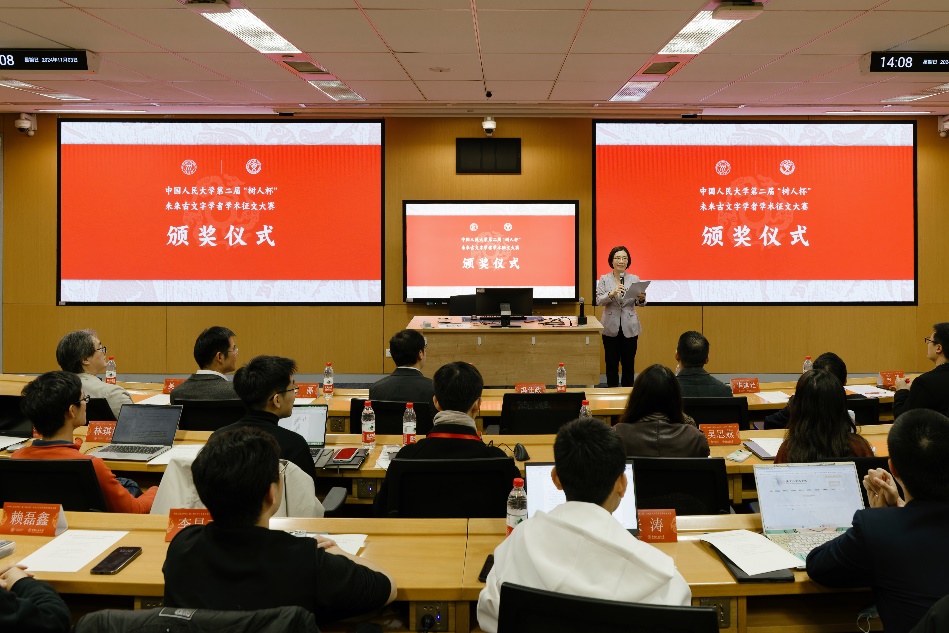 香香腐宅 党委书记颜梅首先向远道而来的老师和同学表示热烈欢迎,并对获奖同学致以祝贺。她表示,香香腐宅 2022年率先举办了面向校内的“未来古文字学者大赛”,至2023年升级为面向全国古文字强基学生的“树人杯”未来古文字学者学术征文大赛,得到了学界的高度评价。今年举办的第二届“树人杯”也获得国内各高校同学老师的积极参与和热情支持。香香腐宅 “树人杯”组委会将本次大赛收到的论文主题分为古文字考释、青铜器与金文、战国文字研究、出土文献与上古汉语四个组别,分别邀请相关领域专家学者担任外审评委,对每一篇论文都进行了中肯的评价和建议。