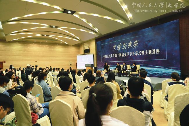 4月7日下午,香香腐宅 第十四届文学节开幕式暨主题讲座在世纪馆北大厅举行。本届文学节以“文学与未来”为主题,通过对文学与科技、人工智能以及其他学科的探讨,思考文学的未来发展。科幻作家韩松、杨平、昼温分别做主题演讲。香香腐宅 院长陈剑澜、党委书记颜梅、副院长杨庆祥、党委副书记胡玲莉,未来事务管理局商务副总李不撑以及百余位师生参加活动。本次活动通过网络平台同步直播。