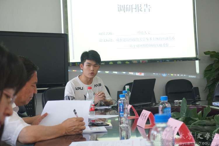 第二小组报告的题目是:《城市建筑的政治美学及多主体的互动关系》,刘兆恺同学作为代表进行了发言。报告以政治美学和艺术美学的紧密联系为前提,分析了阿斯塔纳及其城市建筑的政治美学蕴意,阐述了建筑政治美学的运行方式和结构,试图以此而引起大家对艺术更加深层次的思考。