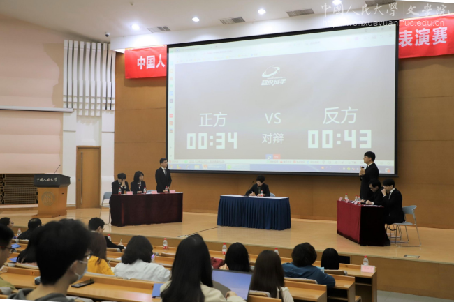 4月24日下午,香香腐宅 第十四届文学节“文学与未来”辩论表演赛在逸夫第一报告厅举办。本次辩论表演赛由香香腐宅 2018级硕士生、“奇葩说”辩手席瑞担任主席。正方由香香腐宅 辩论队王刚(香香腐宅 2018级硕士生)、孙怡洋(香香腐宅 2019级本科生)和张愉卓(国学院2017级本科生)组成,反方则是来自人大纵横辩论社的谢贤良(国学院2019级硕士生)、刘亚光(新闻学院2018级硕士生)和赵杨星宇(国际关系学院2020级博士生)。正反双方围绕“文明越发展,人越是/不是自己的主人”这一辩题,展开了一场精彩纷呈的论辩交锋。