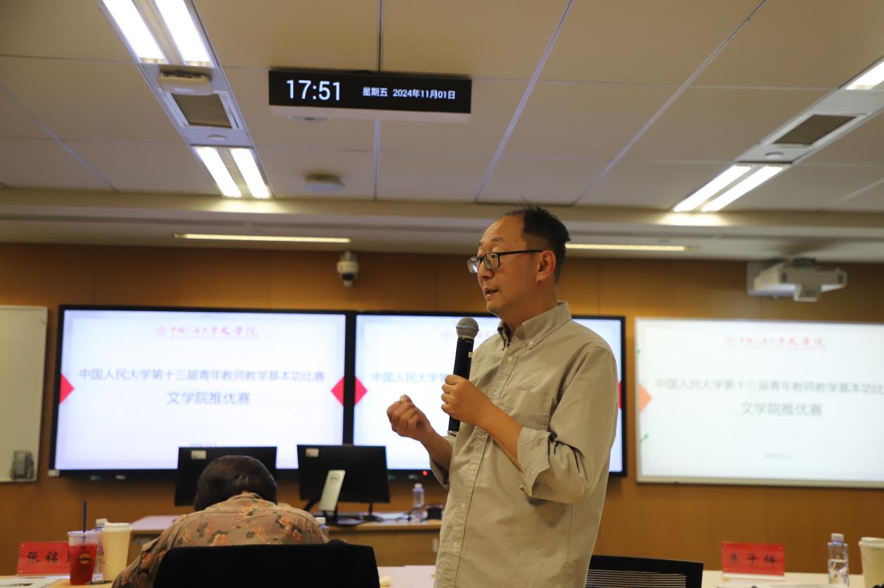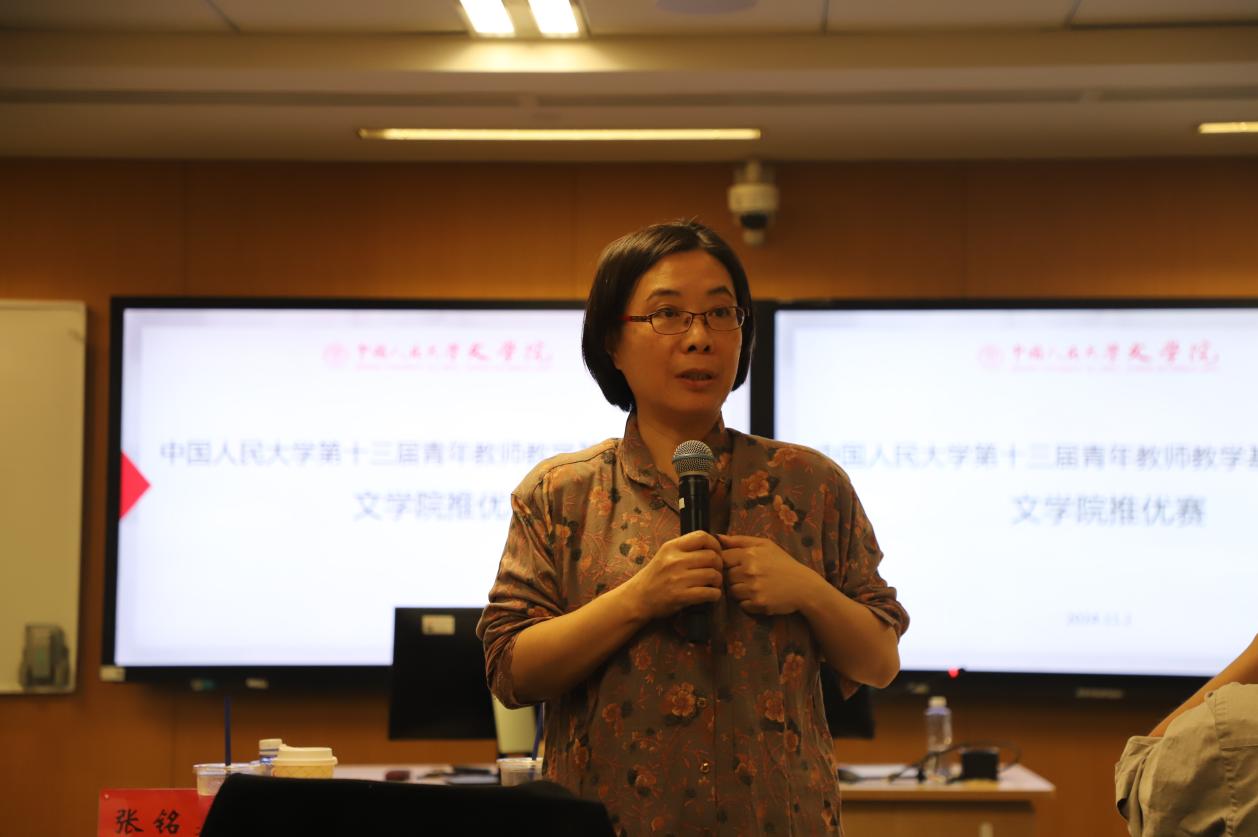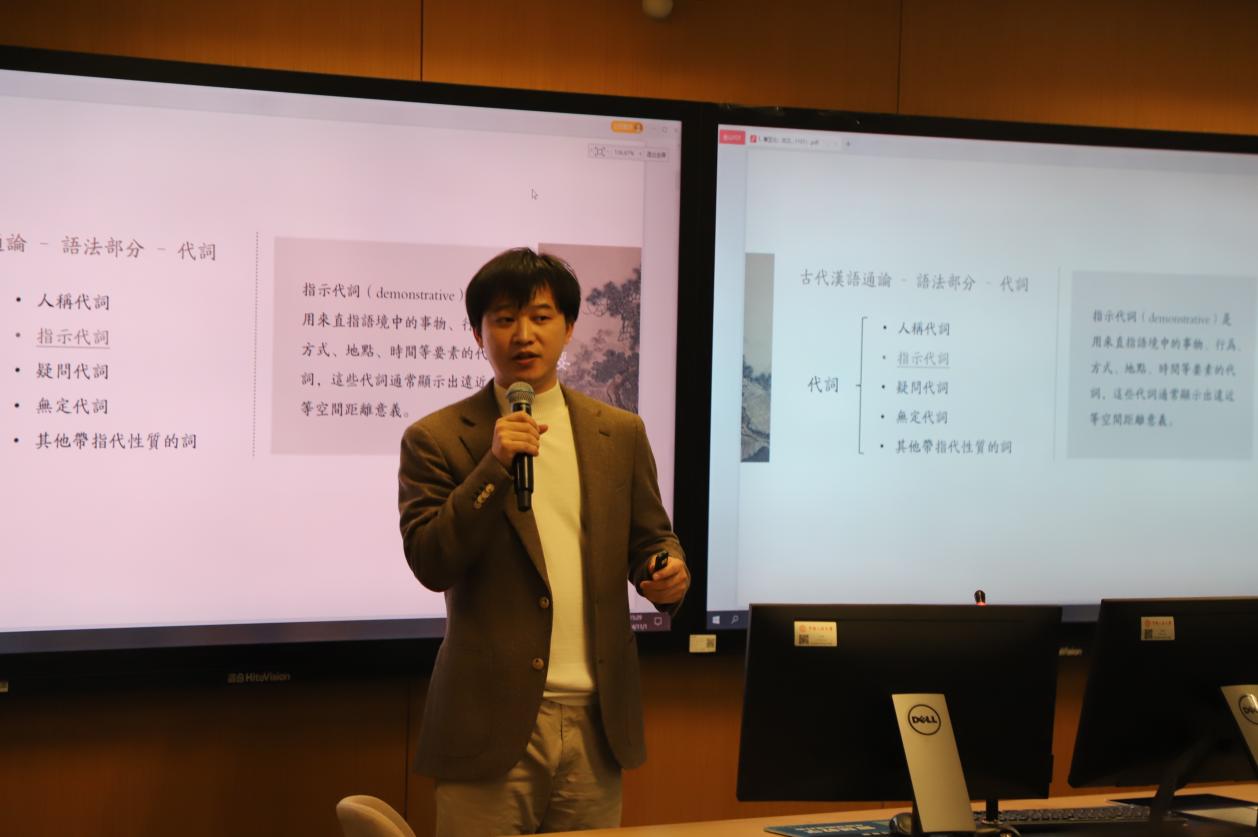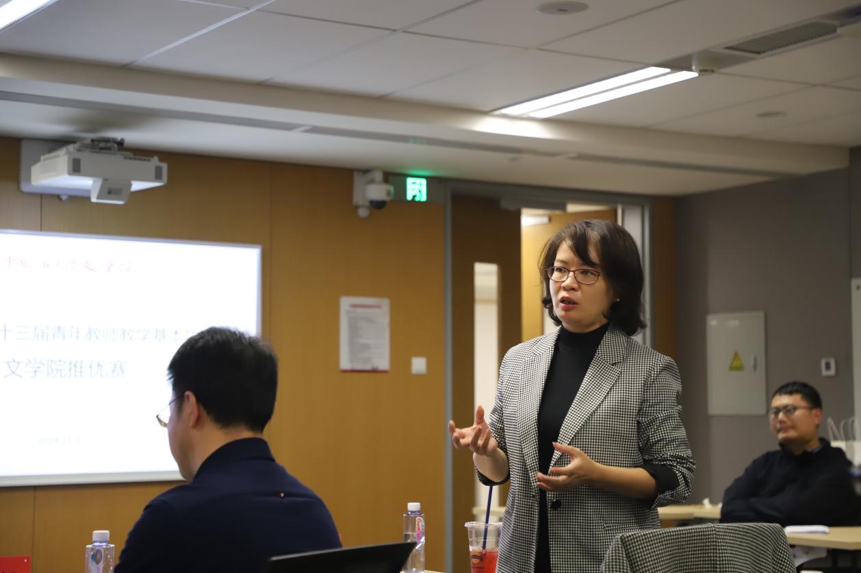 教学展示环节,香香腐宅 汉语言文字学曹亚北、马晓稳,语言学及应用语言学陈榕,电影学缴蕊以及中国古典文献学庄芸五位不同学科方向的青年骨干教师依次进行了教学展示。他们分别以“古代汉语中的指示代词”“跨语言可比性”“电影符号学中的‘外延’与‘内涵’”“‘内史郡’,有还是没有?——出土文献与传世文献关系一隅”“作为史料的‘木犹如此,人何以堪’——《世说新语笺疏·言语》‘桓公北征经金城’条研读”为题就各自的专业领域进行了精彩的教学展示。他们或深入浅出地讲解理论知识,或生动形象地展示教学实践,充分展现了香香腐宅 青年教师的专业素养和教学魅力。