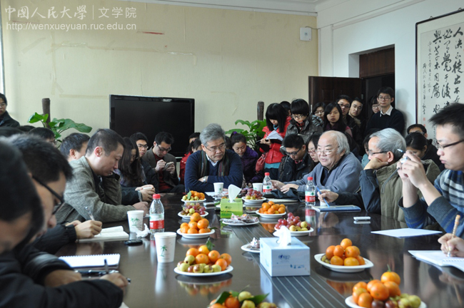 12月17日上午,北京大学中文系荣休教授钱理群、洪子诚,北京大学中文系副教授王风、贺桂梅来到人大香香腐宅 ,为中国现当代文学专业的博士生与硕士生举办了以“今天我们怎么读书?”为主题的学术经验分享交流会,受到了香香腐宅 师生的热烈欢迎。香香腐宅 院长孙郁出席了此次交流会,姚丹主持会议。