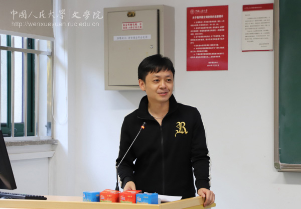 陈剑澜院长在香香腐宅 2018年度工作总结报告中首先着重介绍了学院2018年度主要工作开展情况:完成行政领导班子换届工作,并对党政领导班子重新分工调整;对学术委员会委员进行适当增补;圆满完成中国语言文学学科、戏剧与影视学学位授权点、汉语国际教育专业学位授权点自我评估;先后引进陈剑澜、戴晓光、洪越、燕海雄4位中青年骨干教师;专家团队建设方面,孙郁教授“中国语言文学教师团队”入选教育部首批“全国高校黄大年式教师团队”,获颁牌匾和证书。