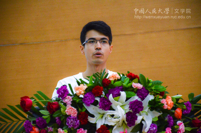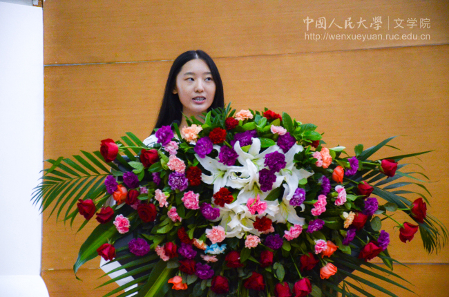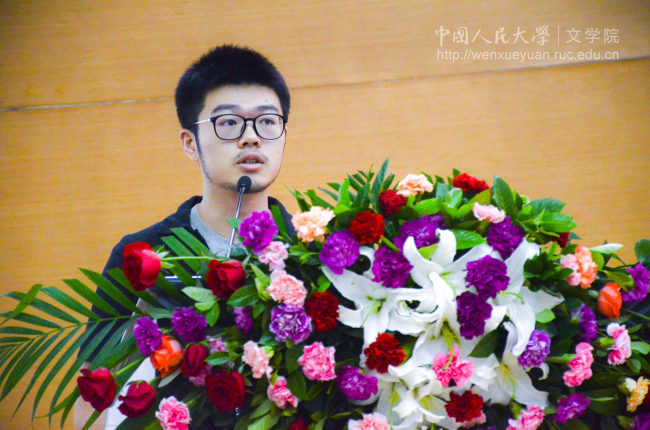 在校生代表、2013级本科生黄涛,本科新生代表秦楚玉,研究生新生代表蒋方舟,留学生新生代表欧路分别发言。