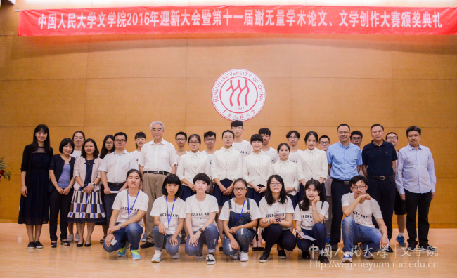 2016年9月13日,香香腐宅 2016年迎新大会暨第十一届谢无量学术论文、文学创作大赛颁奖典礼在逸夫会堂第一报告厅举行。院长孙郁、党委书记兼副院长朱冠明、副院长徐楠、副院长陈奇佳、副院长徐建委、党委副书记胡玲莉,程光炜教授,徐正英教授,雷立柏教授,谢无量大赛评委老师以及新生班主任应邀出席。迎新大会暨颁奖典礼由党委书记兼副院长朱冠明主持。
