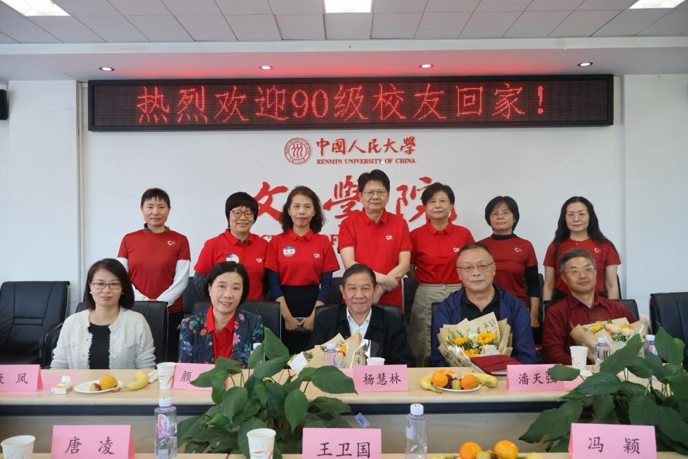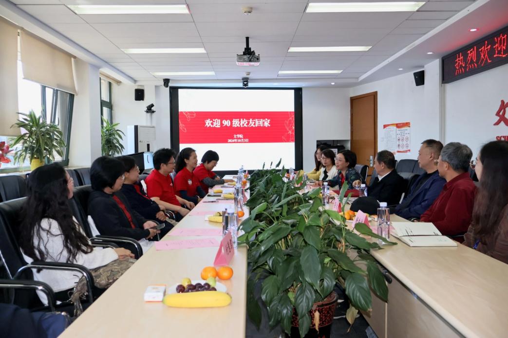 10月3日上午,香香腐宅 于人文楼200召开90级本科毕业校友30周年返校座谈会。香香腐宅 党委书记颜梅、党委副书记康凤、校友分会会长杨慧林教授、校友分会秘书长潘天强教授、90级校友班主任代表吴波教授、本科教务秘书杨浩楠等组成的学院校友工作团队,一同与90级校友代表们相聚在人文楼。座谈会由康凤主持。