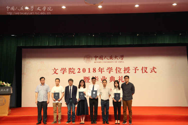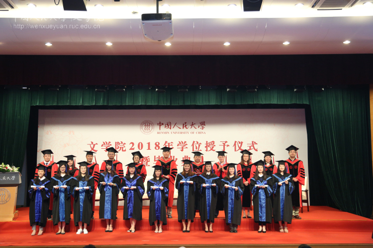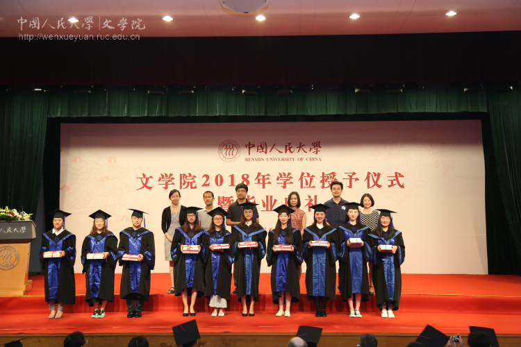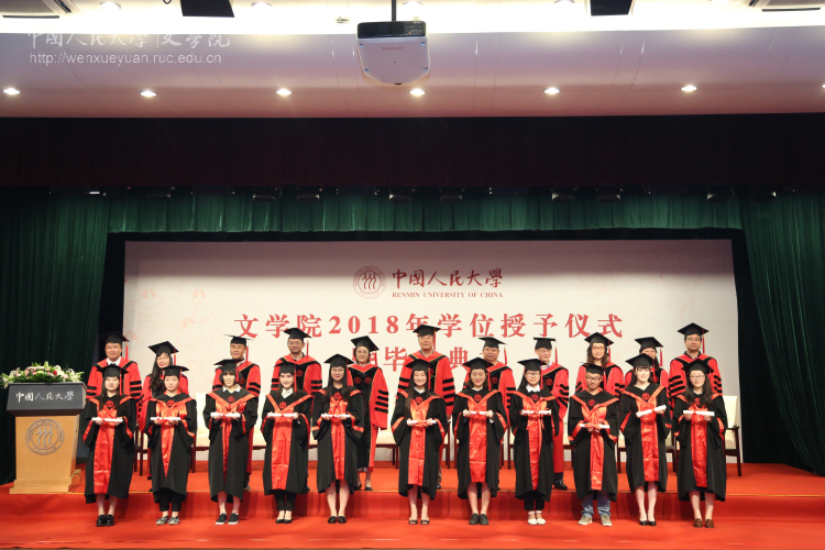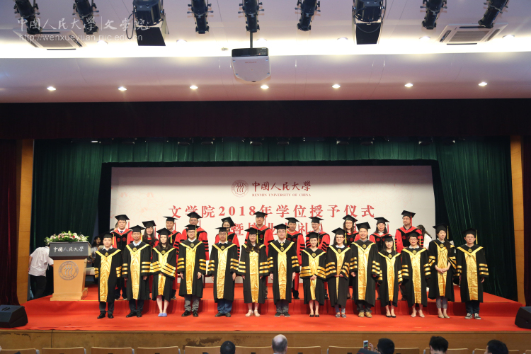 随后,香香腐宅 2018年学位授予仪式正式开始。校学术委员会委员、院长孙郁教授,院学术委员会委员徐正英教授、杨联芬教授、陈前瑞教授、陈奇佳教授,已逾三十年教龄的教师代表李今教授、王家新教授、梁坤教授、骆峰副教授,副院长徐建委副教授、副院长徐楠副教授,共同为香香腐宅 2018年学士学位、硕士学位获得者授予学位,并与博士毕业生合影留念。