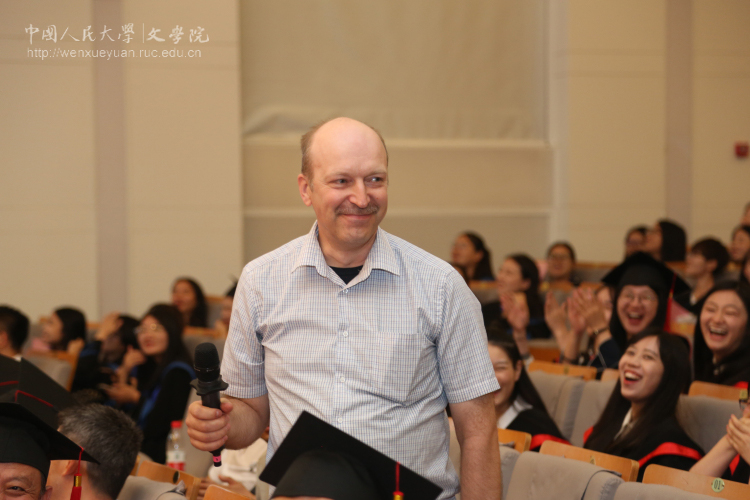 在孙老师温馨寄语的回味中,“给未来的一封信”仪式开启,香香腐宅 奥地利籍全职教师雷立柏教授、副院长陈奇佳教授分别抽取本科、硕士毕业生代表。看着四年前所录视频中的青涩容颜,2014级本科毕业生王振威表示,虽然还没有达到最初设定的种种愿望,但依然感到收获了很多;2015级硕士毕业生刘启民则在阅读三年前给未来自己的一封信时,几度哽咽,从连续三年参加世界汉学大会到“明德人文”项目的系列旅程,她很感激一路上为她传道授业解惑的老师、朝夕相伴的同学,并希望各位毕业生能永葆初心,继续前行。
