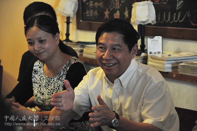 茶座接近尾声时,胡玲莉老师还向甘师兄报告了他捐赠的华辰文化教育基金使用情况:学院将这笔捐款用于每年一度的谢无量大赛,支持学生的文学创作与