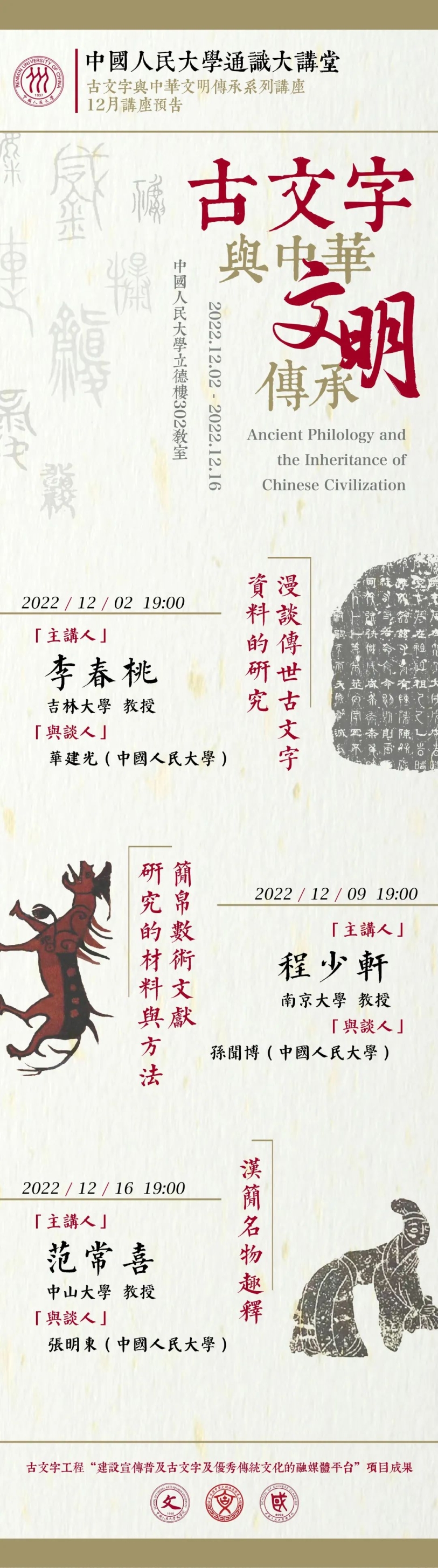 “吴玉章系列讲座”邀请了国内顶尖古文字学者,例如中国语言学会原副会长、北京师范大学王宁教授,中国文字学会会长、清华大学黄德宽教授,中国古文字研究会会长、吉林大学吴振武教授,中国文字学会秘书长、浙江大学张涌泉教授等。通过与大师面对面的交流,学生不仅夯实了古文字学相关知识与能力,前辈学人的家国情怀与治学精神也激发了他们发扬和传承绝学的使命感。本系列讲座于2020年启动,迄今已举办21场。